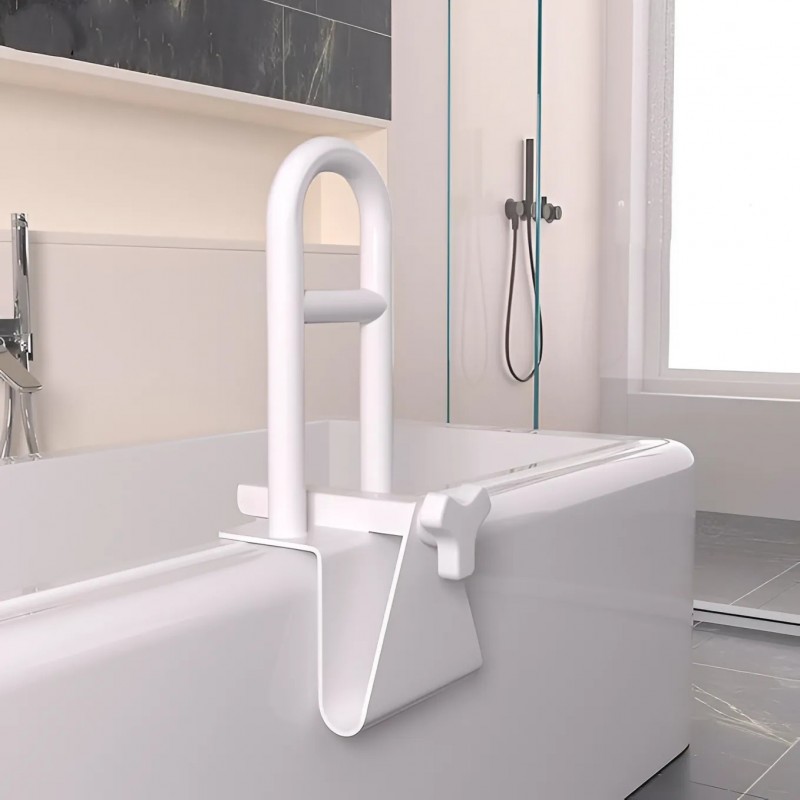 Поручень предназначен для крепления на борт ванны. Используется для безопасного принятия водных процедур: позволяет с комфортом погружаться в ванну и выходить из нее. Изготовлен из прочной стали с антикоррозийным покрытием. Крепление поручня оснащено резиновыми прокладками для дополнительной устойчивости и защиты эмали ванны от повреждения.