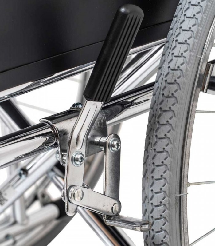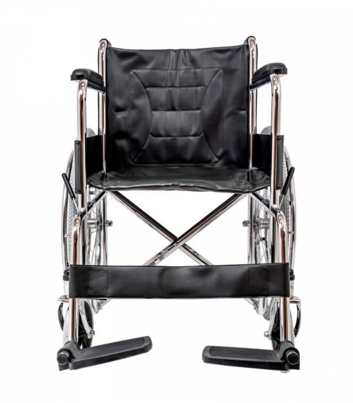 Удобная коляска по демократичной цене. Коляска очень компактна, ее ширина составляет 62 см, что делает ее идеальным вариантом для малогабаритной квартиры. Сиденья и спинка из эко-кожи легко моется и не растрескивается. Рама из хромированной стали выдерживает нагрузку до 100 кг. Подножки у данной модели регулируются и фиксируются в 2 положениях в зависимости от нужд пользователя.