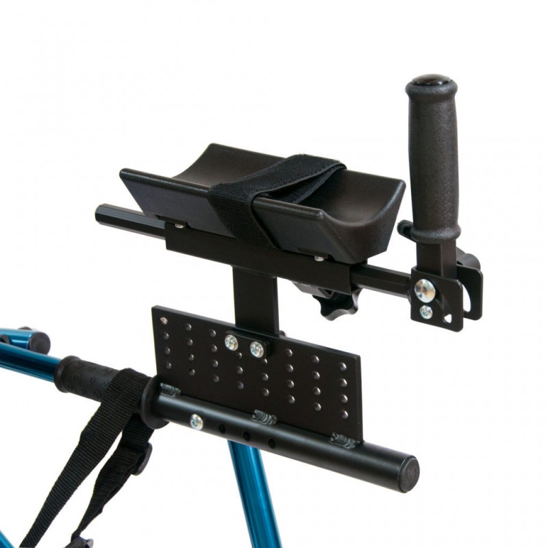 Подлокотные опоры ходунков фиксируют предплечья в удобном положении, позволяя при этом держаться руками за рукоятки с нескользящим покрытием; угол наклона рукояток можно изменять от вертикального до горизонтального положения.