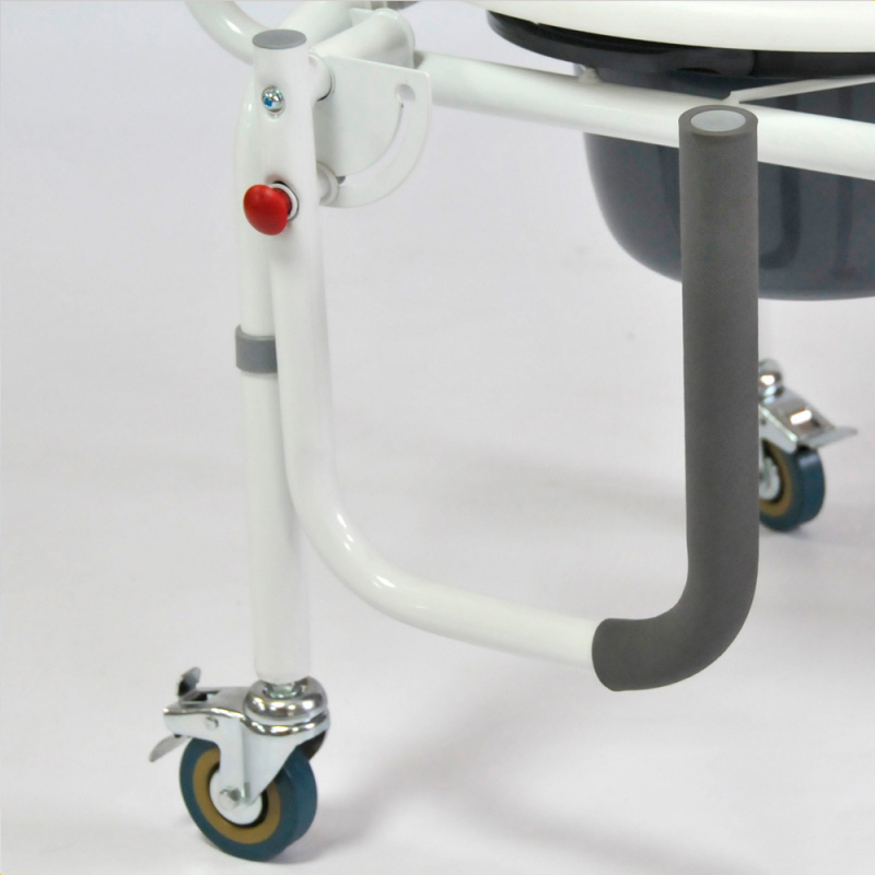 Кресло-туалет используется при уходе за людьми с инвалидностью и больными в лечебном стационаре или домашних условиях. Рама выполнена из стали с полимерным покрытием и не подвергается коррозии. Подлокотники кресла опускаются и поднимаются, что облегчает процесс пересадки. Кресло оборудовано санитарной емкостью с крышкой, которая легко снимается. Емкость удобно переносится за ручку. Кресло регулируется по высоте с помощью кнопочных фиксаторов на ножках конструкции (5 положений регулировки с шагом в 2,5 см). Подлокотники легко опускаются и поднимаются благодаря механизму (надавите на кнопку, затем потяните на себя или опустите подлокотник), за мягкие накладки удобно держаться руками. Сиденье и крышку легко отсоединить для санитарной обработки, благодаря клипсовому креплению. Задние колеса оснащены стояночными тормозами.