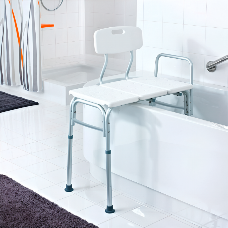 Стул для ванной комнаты используется при уходе за больными в лечебном стационаре или домашних условиях. Стулом удобно пользоваться в ванной комнате или душевой. Широкая конструкция стула позволяет установить одну часть непосредственно в ванную, а другую оставить на полу (высота ванны не должна превышать 50 см). Стул регулируется по высоте,  имеет 5 положений регулировки высоты с шагом в 2,5 см.
