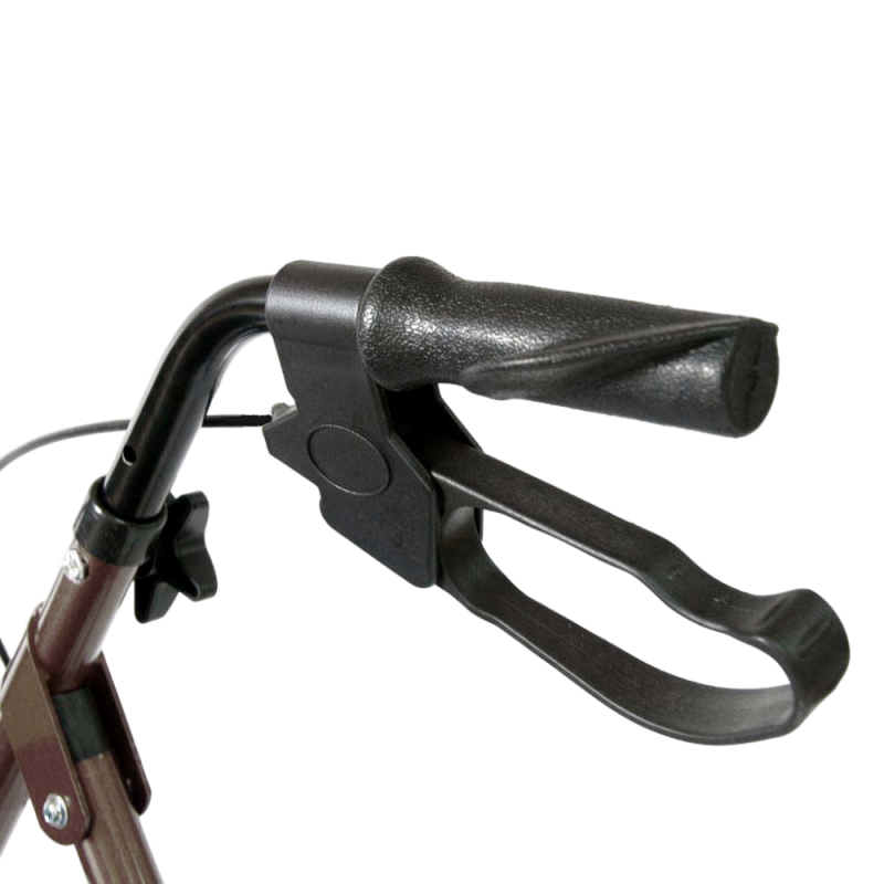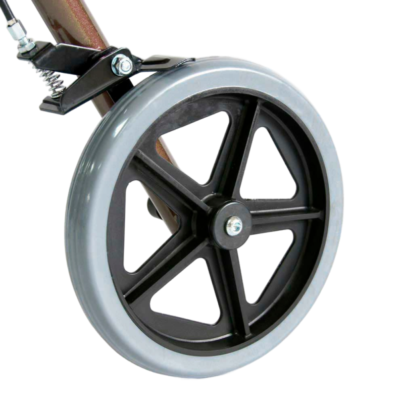 Конструкция ролятора с повышенной грузоподъемностью выполнена из алюминия с полимерным покрытием, сиденье обшито искусственной кожей. Ролятор оборудован двумя ручными тормозами задних колес c фиксирующей функцией, расположенных на ручках конструкции. Ручки имеют рифленую форму и не скользят в ладонях; регулируются по высоте. Под сиденьем закрепляется вместительная корзина для личных вещей и продуктов. Опору для спины можно отсоединить, если ролятор не используется в качестве стула. Ролятор складывается и не занимает много места дома или при транспортировке.