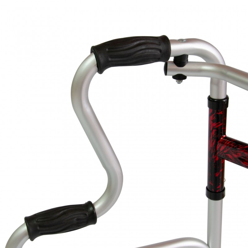 Опорные поручни ходунков выполнены из анодированного алюминия и не подвергаются коррозии, соединяющая рама — из стали с полимерным покрытием. Ходунки легко складываются и не занимают много места, имеют 8 положений регулировки высоты с шагом в 2,5 см. Мягкие накладки на поручнях ходунков не дают рукам скользить; резиновые наконечники, расположенные на опорах, предохраняют от скольжения по твердым поверхностям.